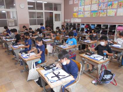 今回のめあては【はらいにの筆使いに気をつけて書こう】です。