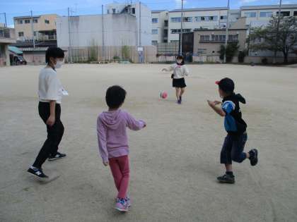 今日の1時間目は,ひかり学級で好きな遊びを選んで遊びました。転がしドッジボールや砂遊びなどをしました。約束を守って仲良く遊ぶことができ,楽しい時間になりました。