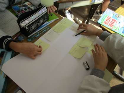 自分の意見を付箋に書き,お互いの意見をグルーピングしながらまとめました。