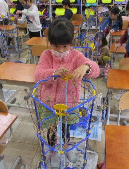 生活科の学習で育てたあさがおのつるをつかって,