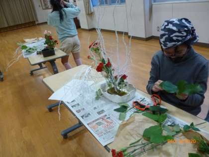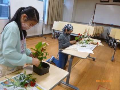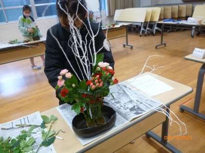 隔週の火曜日は,お茶・お華部が活動をしています。6年生4人で和気あいあいと楽しんでいます。今日は,お花を生けました。