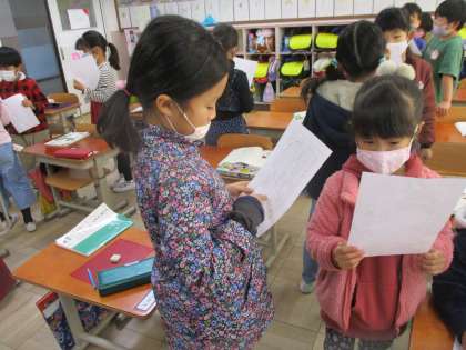 国語科「ともだちのこと,しらせよう」では,友だちに楽しいことを聞き取り,文章に書きました。