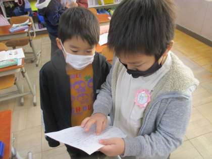 昨日は,書いた文章を友だちとで読みあいました。