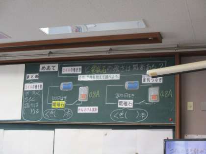 コイルの巻き方と電磁石の強さに関係があるのかを確かめました。