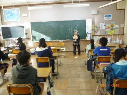 今日は,6年2組の教室で朝の読み聞かせをしていただきました。