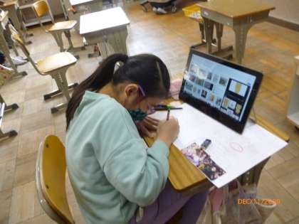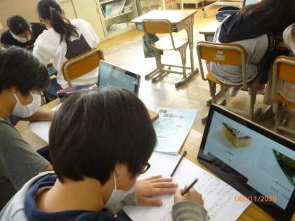 日本の文化について各自で決めたテーマに沿って,調べ学習をしています。タブレットの使い方にも慣れ,パンフレットに上手くまとめています。