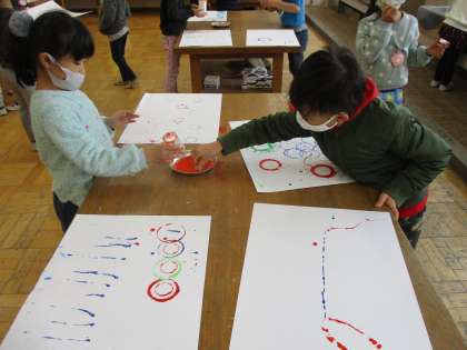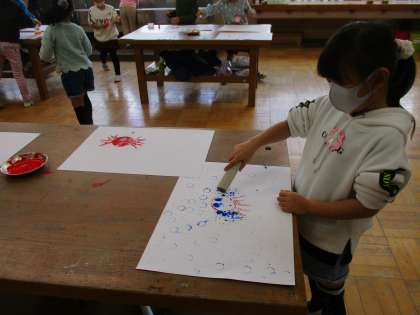 絵の具をつけて,うつす学習が2度目ということもあり,