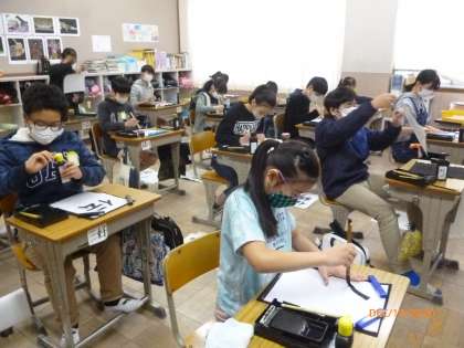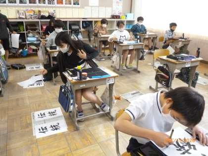 「伝統」の二文字を練習しました。「統」は画数が多くて少し難しかったです。