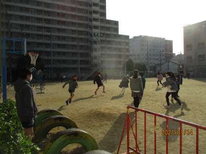 今朝は,1時間目の体育の予定が少し変更になり,みんなで運動場で影ふみ鬼ごっこをしました。暖かくて気持ちの良い朝でした。こうやって遊べるのも,後少しですね。