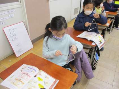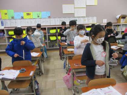 昨日の音楽では,色々な楽器の使い方を確認し,リズム打ちを楽しみました。