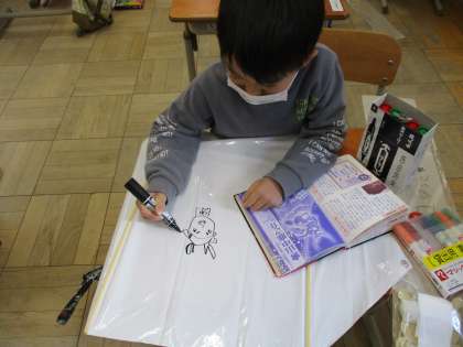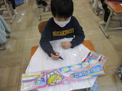 今日は,凧に絵を描きました。