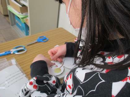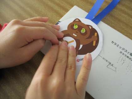総合の学習で,モノづくり体験をしました。圧電素子の仕組みを利用してタヌキのおなかをたたくと目のライトが光るおもちゃを作りました。完成したら早速トントンとおなかの部分を叩いて,ライトが光るのを見て楽しんでいました。