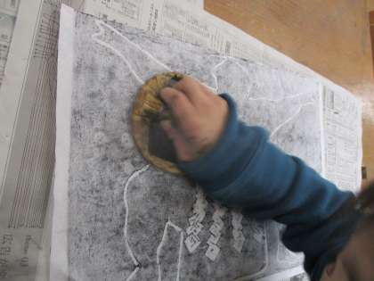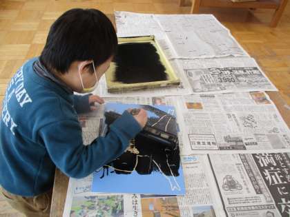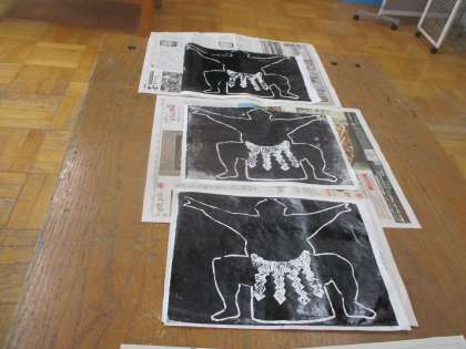 力を込めてローラーやバレンを動かし,みごとな横綱の姿が浮かび上がりました。