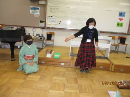 今日の音楽では,お琴の先生にきていただき,直々にお琴の指導を受けました。