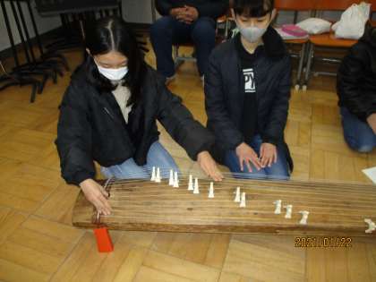 「つめ」で弦をしっかりとはじくと,音も大きく長く響きます。加減が難しいです。