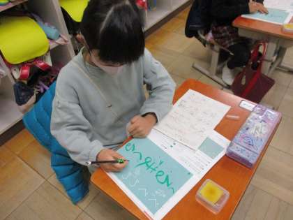 3年生では,墨汁を使って,毛筆書写が始まります。