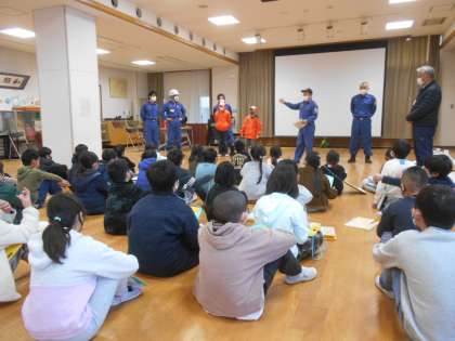 社会科の学習で消防団の方に来ていただき,お話を聞きました。