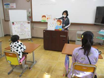今日は栄養教諭の新留先生に食の指導をしていただきました。「この食べ方はどうかな?」と,イラストやみんなの食事様子の画像を見ながら,お話してもらいました。よい姿勢で食べると食べ物の通り道がまっすぐ整うことなど,教えていただきました。