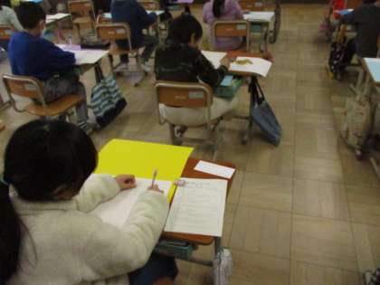 インタビューしてきたことを振り返って,じっくりとカードに書く姿が見られました。