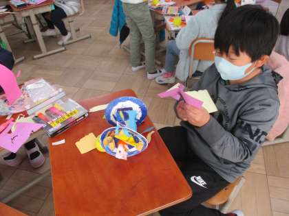 図工の学習「かみざらコロコロ」の仕上げをしました。