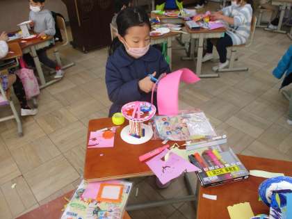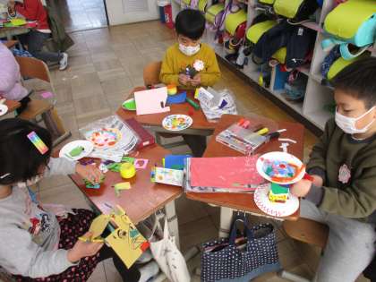 一人ひとり絵や折り紙,画用紙の使い方に工夫が見られます。