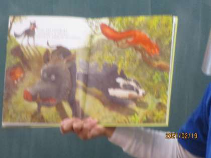 狼が絵本の魅力にひかれ,ウサギから絵本の読み聞かせをしてもらい,だんだん文字が読めるようになっていく話でした。絵本を通して,おおかみも他の動物と仲良くなれたようです。