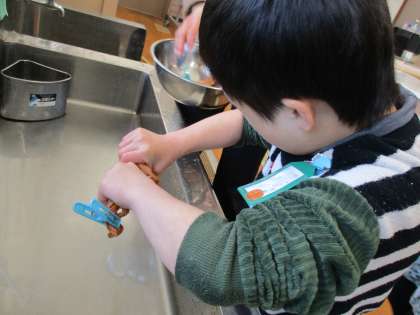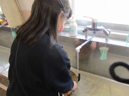 4年生の二人もしっかりと洗ってギュッと絞り,色止めの準備ばっちりです。