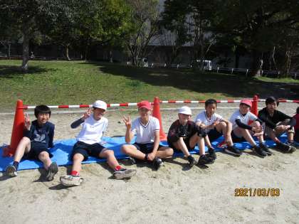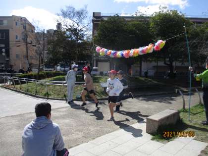 高学年は4周を走ります。自分のペースでみんなしっかりと走っていきます。ゴールした後の笑顔が満開!