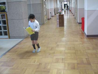 教室と職員室の往復を走らず,立ち止まらず,歩くことができました。健康観察を持っていき,給食カードを受け取って帰ってくるのが日直の仕事です。職員室ではノック→「クラスと名前」→「健康観察をもってきました」→「失礼しました」と言っています。