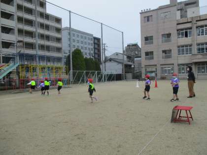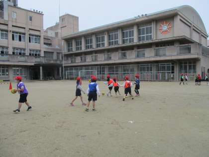 今日は運動場でボールけりゲームをしましたが…