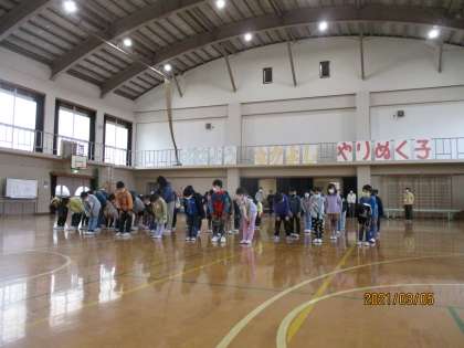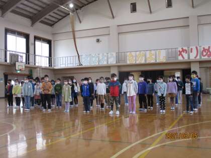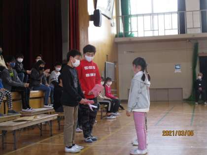 次は1年生です。素敵なカードのプレゼントをいただきました。登校班では,6年生がお役に立てたかな?