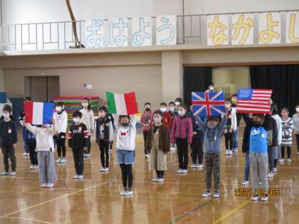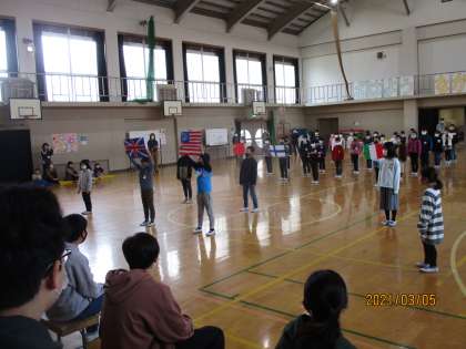 3年生は,いろいろな国の言葉で「ありがとう」を表現してくれました。こちらこそ,ありがとうね!