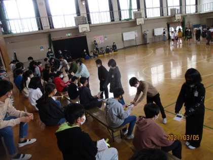 5年生からは,カラフルに色塗りした「しおり」をいただきました。読書の時に使いますね。