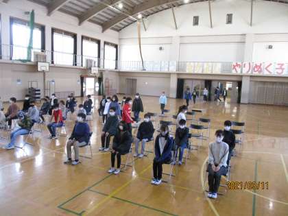 入退場もしっかりと出来ました。明日は,証書授与の練習をします。