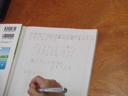 算数科の学習では,0の入ったかけ算について考えました。かける数やかけられる数が0のときの計算がどのようになるのか,さまざまな意見を出し合って考えていきます。