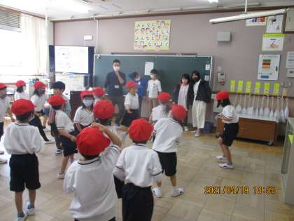 1年生に掃除の仕方を見せに行っています。正しい掃除の仕方をする6年生。1年生の鏡になれると嬉しいです。