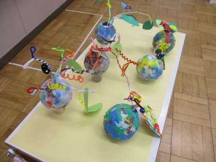 小さな巨匠展が中止となり残念です。がんばって作った作品は教室前の廊下に展示しています。絵も立体作品も力作ぞろいです。