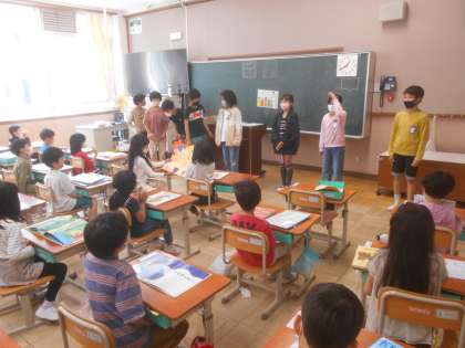 1年生を迎える会で1年生のために作ったプレゼントを渡しに行きました。