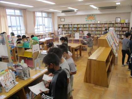 図書館の中で本を探しやすくする工夫を知り,実際に学校図書館に行き,工夫をたくさん見つけました。