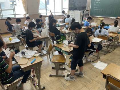 和紙を型に貼り付けるのに苦戦していましたが,それぞれ最後まで作品を作り切りました。