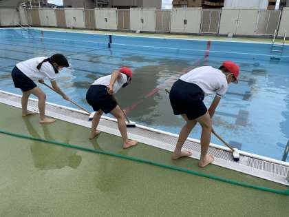 プールサイドや腰洗槽などを中心に掃除をしました。