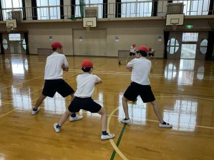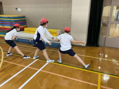 悪天候のためプールに入れなかったので,体育館で民ように取り組みました。
