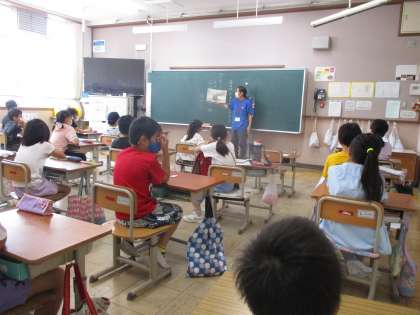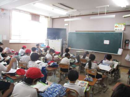 朝読書の様子です。読み聞かせに来ていただいてお話を聞いたり,自分の好きな本を黙々と読んだりしています。