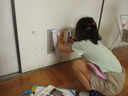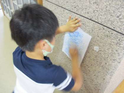 図画工作科で身の回りにあるでこぼこを見つけて,うつしとる学習をしました。校内を歩いて子どもたちはたくさんのでこぼこを発見していました。うつしとりながら,