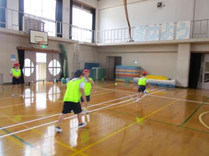 3年生のエンドボールの様子です。チームで勝つために作戦を考え練習をしていました。