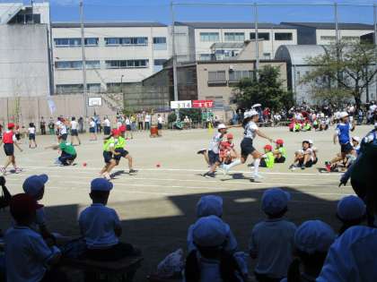 「色別対抗リレー」もスピード感いっぱいで、応援にも熱が入ります。