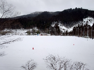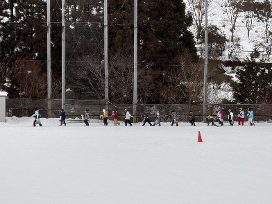 歩くスキーをするためにグラウンドへ移動します。