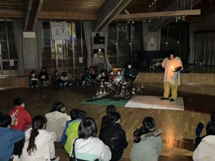 キャンドルファイヤーが始まりました。火の神から、勇気、友情、情熱、愛の四つの火を授かりました。