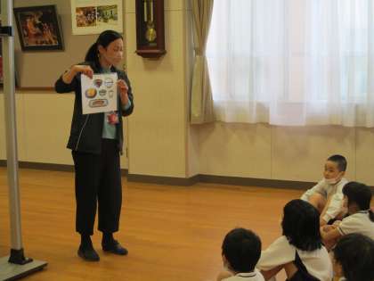 計測前に,養護教諭から毎日を元気に過ごすために大切なことのお話がありました。
