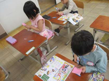 切った折り紙をひろげてみると・・・・は次の時間のお楽しみのようです☆